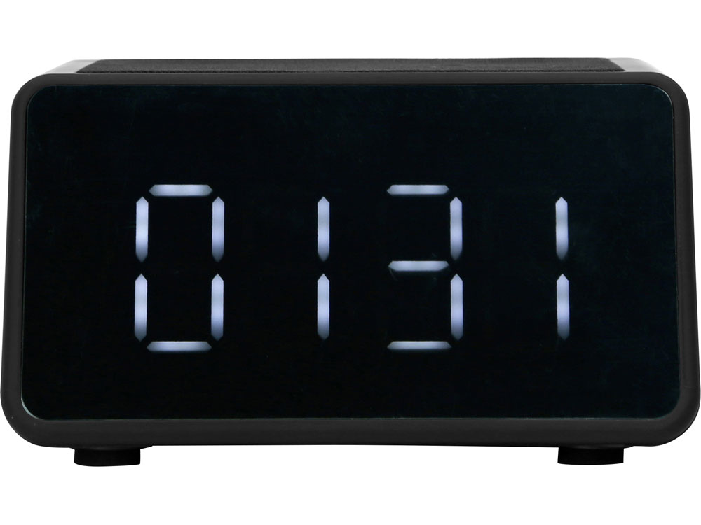 Беспроводная колонка с часами и функцией беспроводной зарядки Sentry от Evolt. Устройство может работать автономно, что позволяет использовать его в любой точке квартиры и за ее пределами и избавиться от проводов на рабочем столе. Колонка подключается к смартфону при помощи Bluetooth, имеет большой динамик, занимающий собой всю нижнюю панель Sentry.