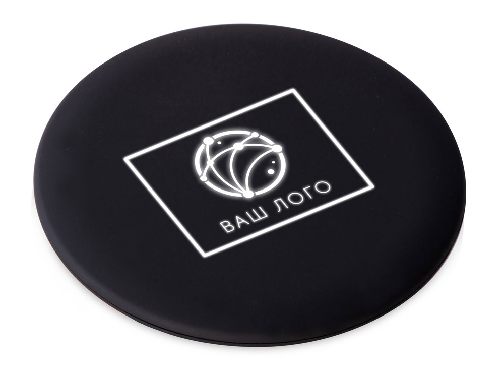 Moon spot — беспроводное устройство для зарядки в бархатистом корпусе софт-тач от Evolt. При гравировке верхний слой снимается, открывая подсветку — на бархатистом черном фоне светящиеся белым контуры выглядят особенно ярко и контрастно.