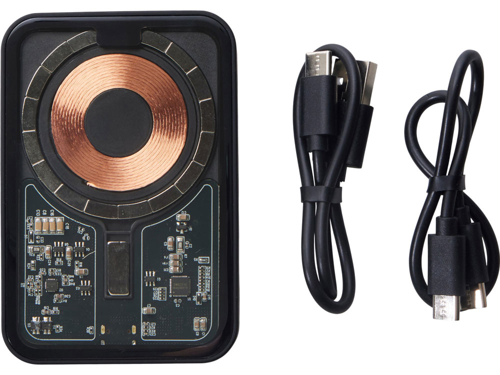 Беспроводной магнитный внешний аккумулятор MagnifIQ — технологичный и стильный power bank с эффектной прозрачной передней панелью, сквозь которую видны мощные магниты, индукционная катушка и электронная начинка. Ёмкость 10 000 мА·ч обеспечивает до 2–3 полных зарядов смартфона, а поддержка быстрой беспроводной зарядки до 15 Вт (с совместимостью QC/PD) делает процесс зарядки максимально быстрым и удобным. Двунаправленный USB-C порт позволяет как заряжать другие устройства, так и сам аккумулятор. Обе стороны корпуса подходят для нанесения логотипа: лицевая — через прозрачную панель, задняя — на приятное на ощупь soft-touch покрытие. Компактный, надёжный и сильный — идеальный технологичный продукт для продвижения и ежедневного использования. Поставляется в качественной упаковке с шубером, Двунаправленный кабель USB-C и кабель USB-A – USB-C в комплекте.