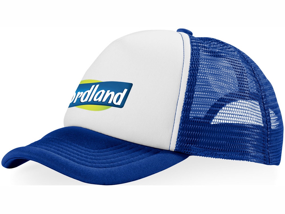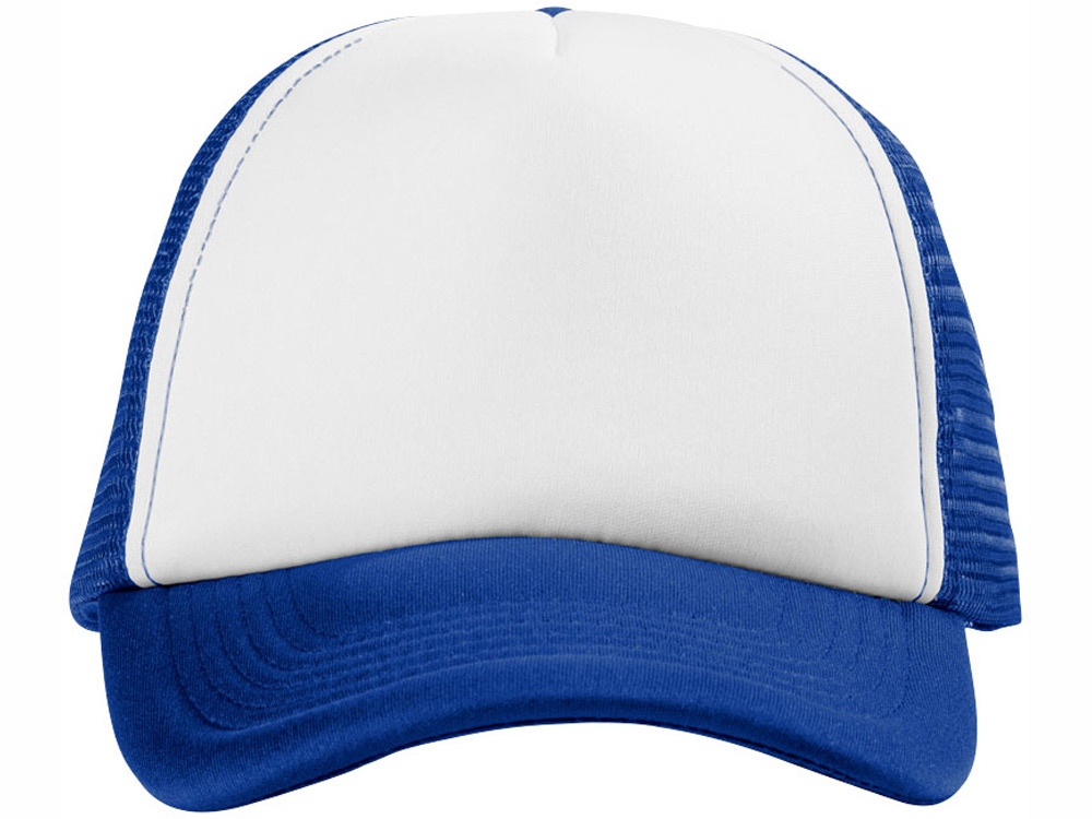 Кепка из 5 панелей Trucker. Оригинальная кепка на окружность головы 58 см с передней поролоновой частью, пластиковой сеткой сзади и пластиковой застежкой. Эта кепка полностью соответствует требованиям к соединениям AZO, формальдегиду и ПХФ. Полиэстер и поролон.