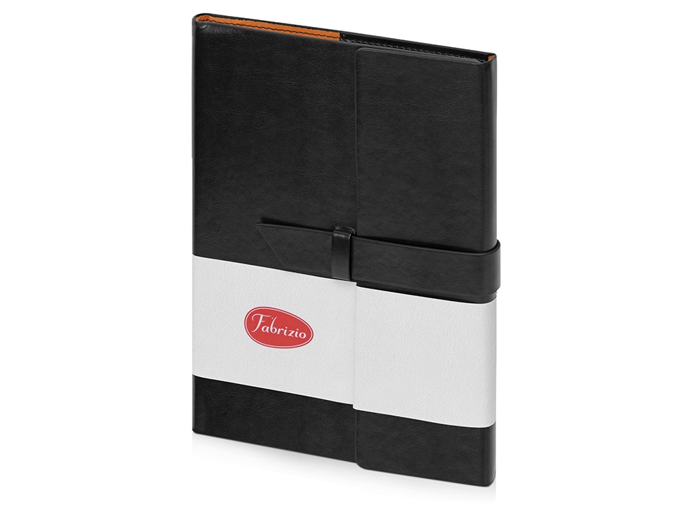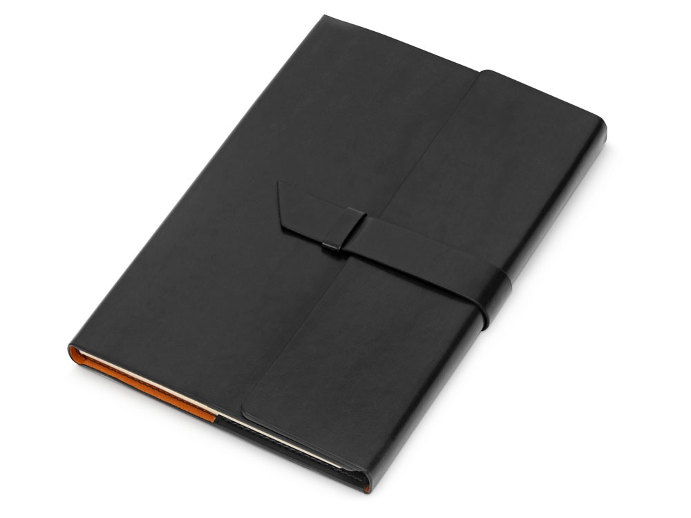 Бизнес-блокнот формата А5 в твердой обложке из искусственной кожи с ручкой в тон станет отличным подарком для любого клиента. Блокнот состоит из обложки с клапаном и сменного блока с линованными страницами.