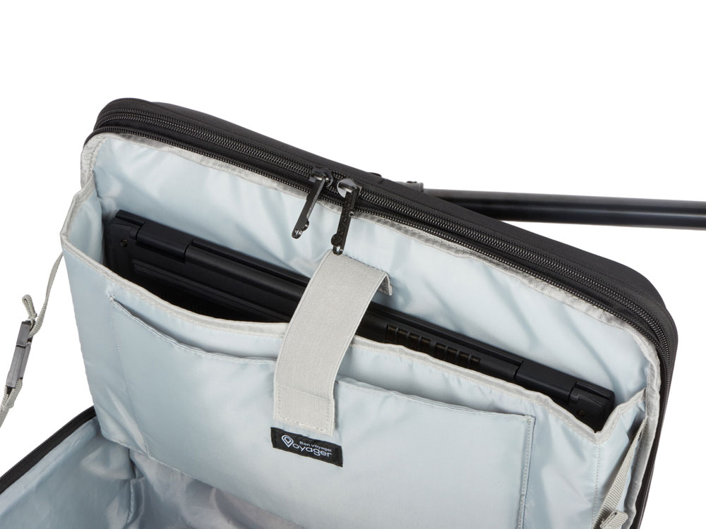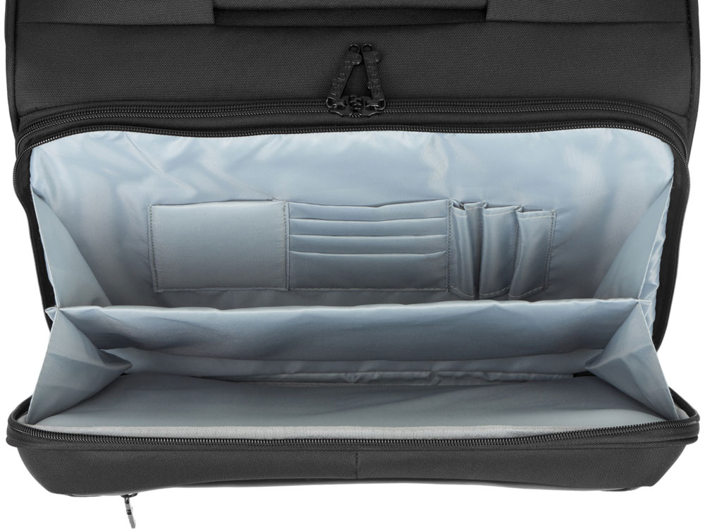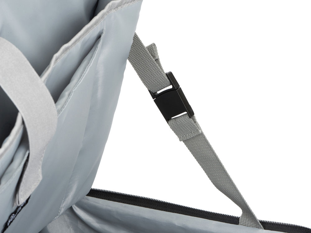 – большое отделение с карманами для ноутбука и планшета и пространством для одежды с фиксатором-пряжкой