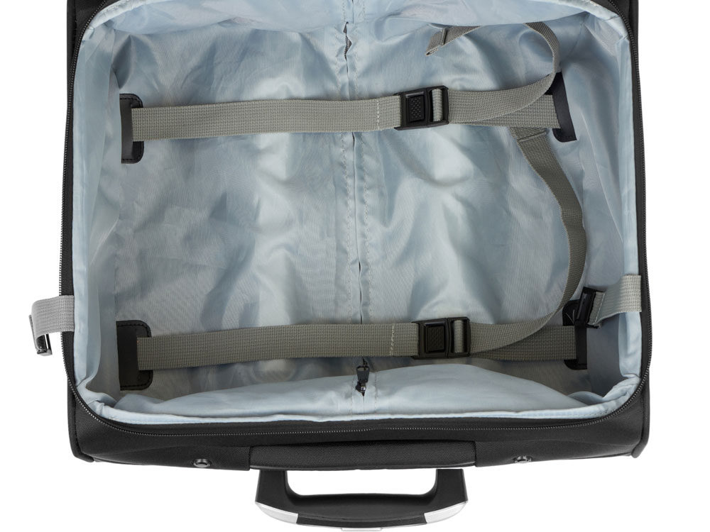 – степень открытия чемодана регулируется боковыми ремнями
