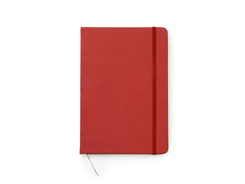 Блокнот формата А5 в обложке из искусственной кожи. Закладка и резинка. 100 листов в линейку.