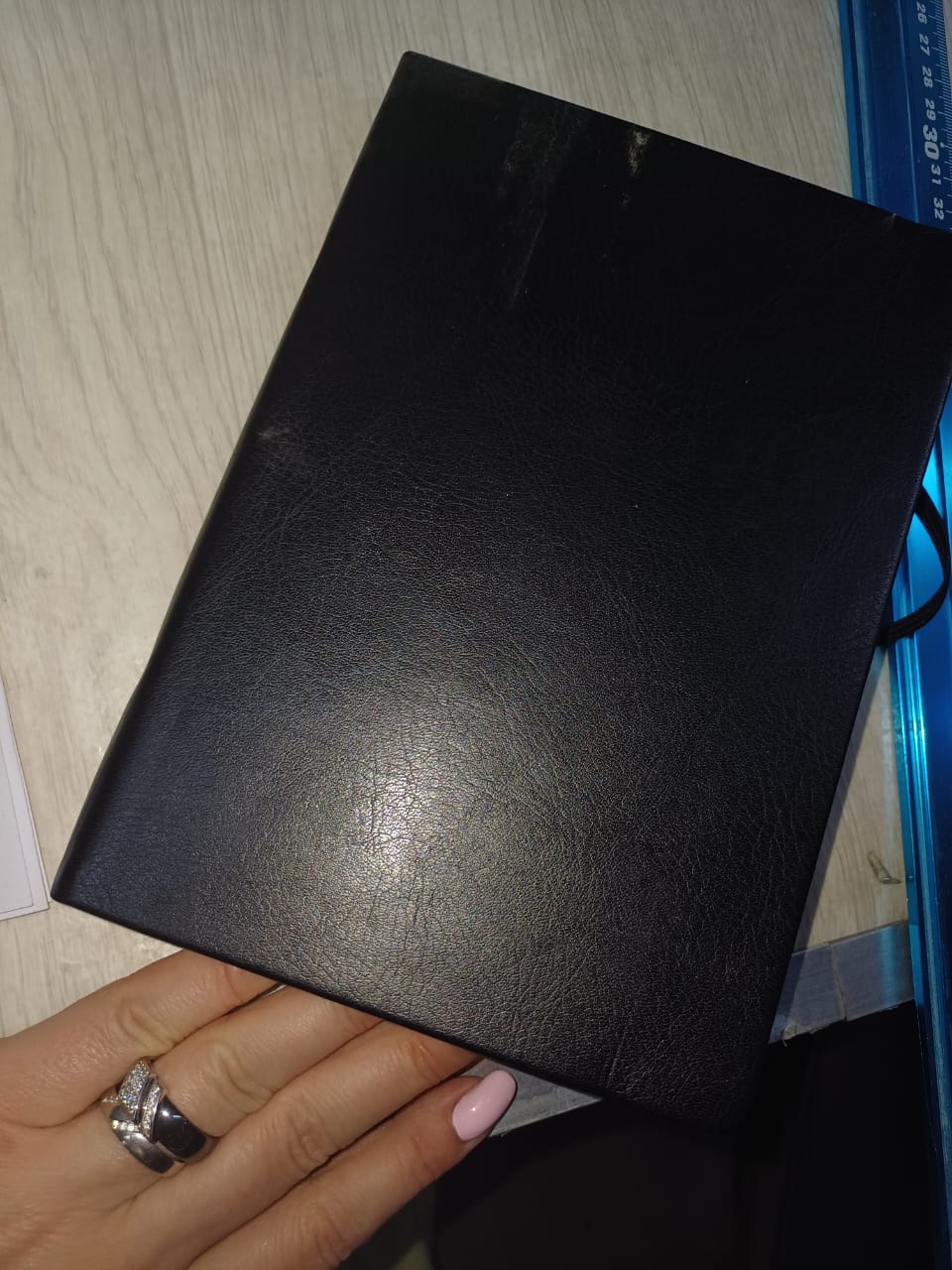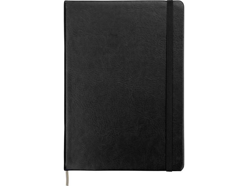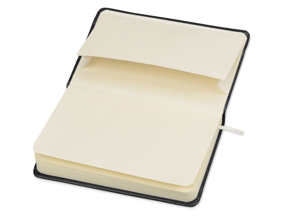 Линованный блокнот формата А5 с закладкой, эластичной застежкой и удобным карманом для карточек и записок.