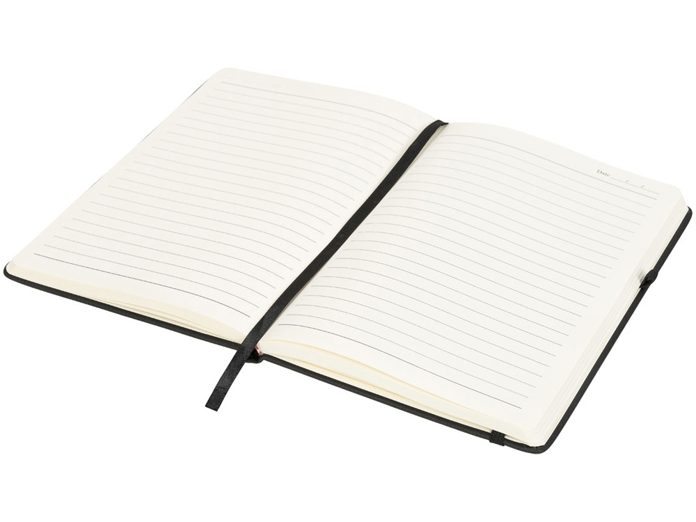 Блокнот Rivista среднего размера. Блокнот Rivista отличается стильным современным дизайном с высококачественной обложкой, идеально подходящей для нанесения логотипа и информации вашей компании. Предлагаются современные цвета. Также предусмотрена эластичная застежка, держатель для ручки, лента-закладка и внутренний кармашек на задней стороне обложки. Содержит 128 листов линованной бумаги (70 г/м²) кремового цвета. ПУ.