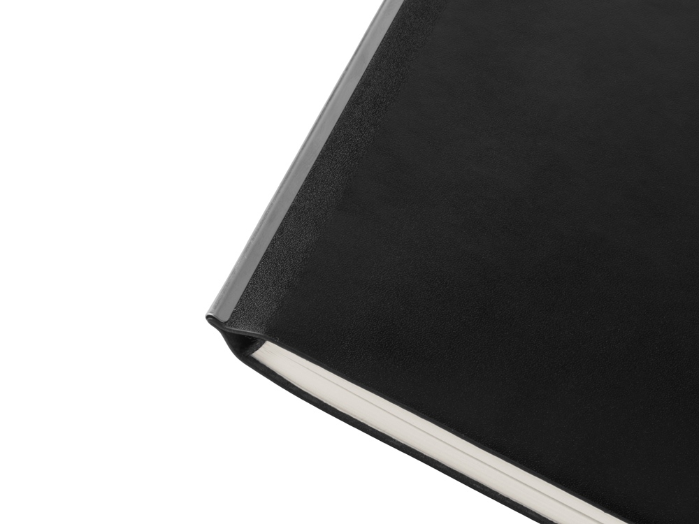Гибкая обложка выполнена из искусственной кожи, корешок дополнен металлической вставкой.