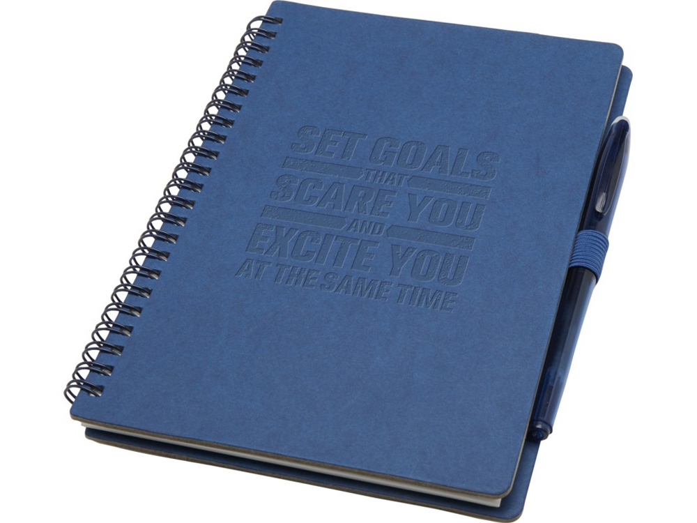 Многоразовый набор из ручки и блокнота в мягкой обложке из каменной бумаги. Блокнот имеет обложку из картона, закругленные углы и 32 листа линованной бумаги плотностью 120 г/м². В производстве каменной бумаги не используется дерево, а на сам процесс изготовления затрачивается гораздо меньше энергии в сравнении с производством переработанной или целлюлозной бумаги. Сзади имеется карман для хранения черной протирочной ткани (входит в комплект). Ручка из переработанного пластика с стираемыми чернилами, прозрачным корпусом, белым ластиком сверху и однотонной цветной рукояткой. Цвет чернил: черный. Длина непрерывной линии: 250 метров. Размер пера: 0,7 мм.