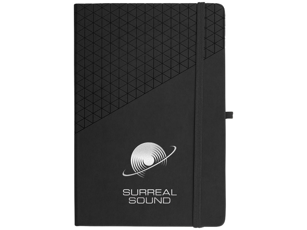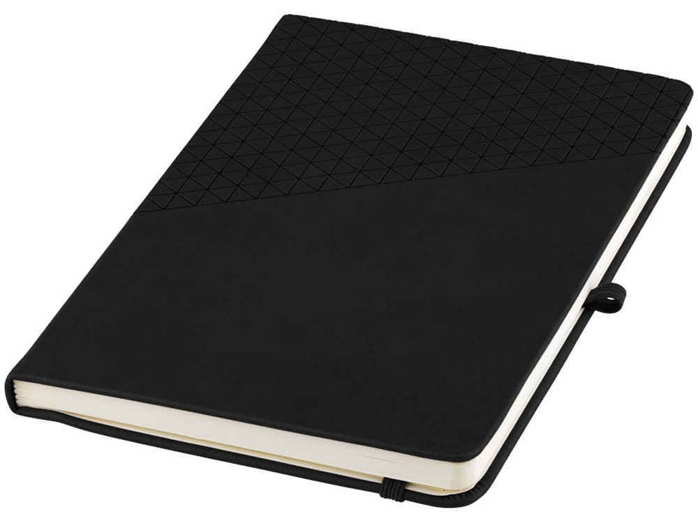 Блокнот А5 Theta. Блокнот А5 в приятной на ощупь обложке в стильном геометрическом дизайне. 80 листов линованной бумаги 80г/м2, закладка – лента, эластичная застежка и петелька для ручки. Кожзаменитель.