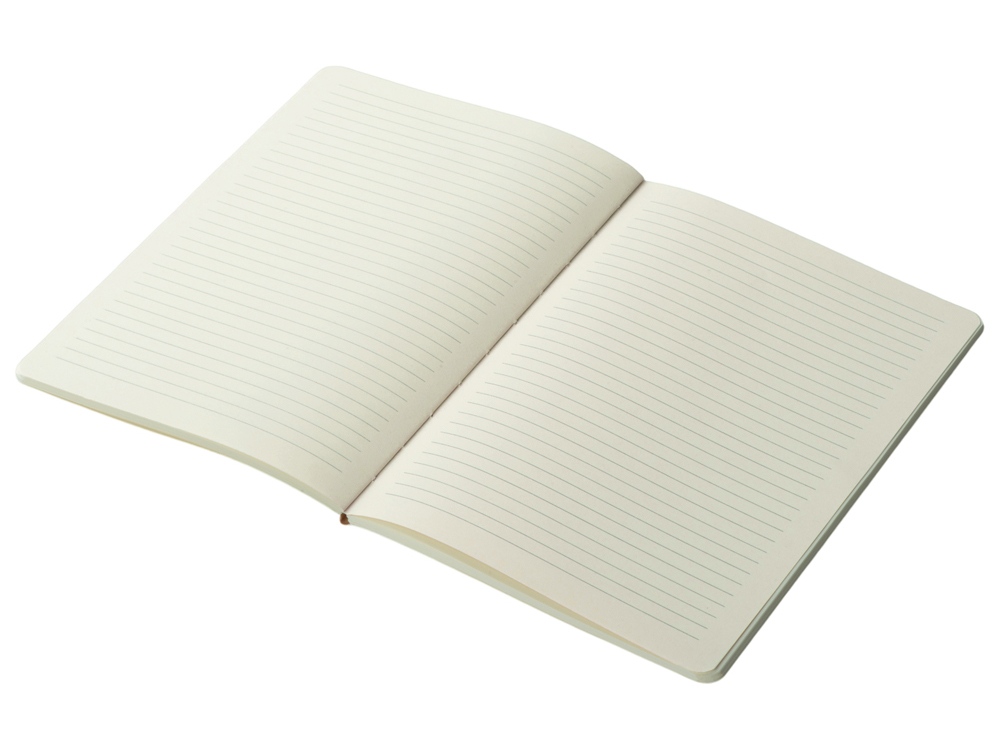 В блокноте 128 линованных страниц кремового цвета с плотностью 70 г/м2.