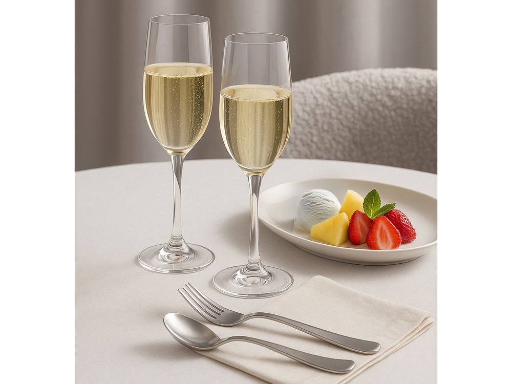 Классический бокал для шампанского выполнен из минерального стекла. Его легко мыть, он впишется в любой интерьер и сервировку, а также может стать частью вашего бара или ресторана. Форма этого бокала также называется флют — она специально рассчитана для игристых вин, не давая аромату слишком быстро улетучиваться вместе с пузырьками.