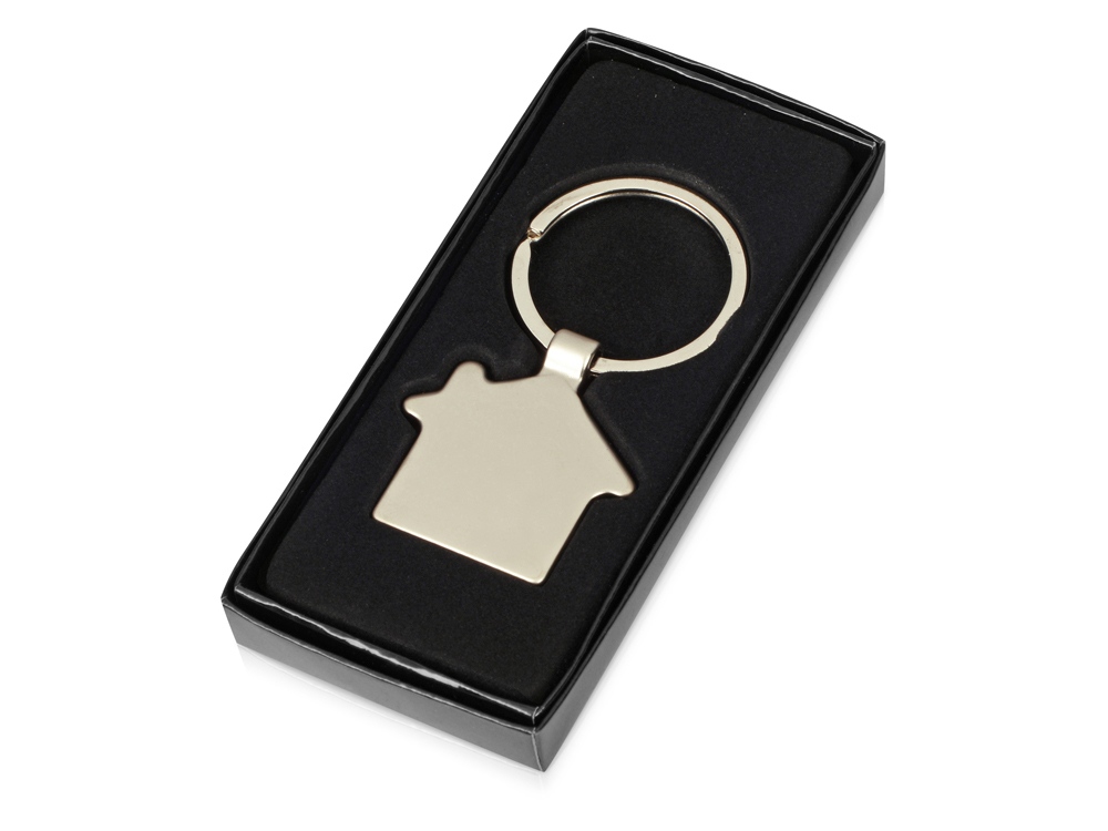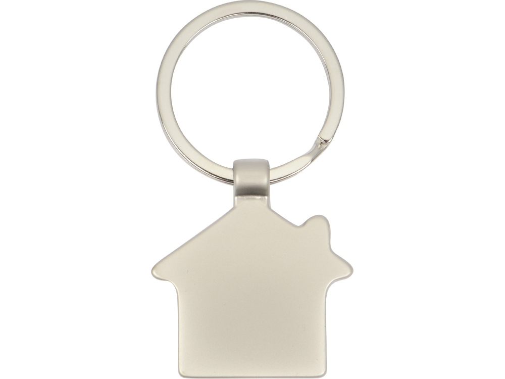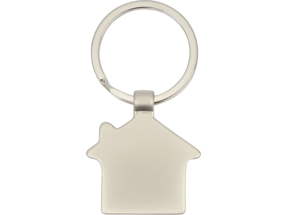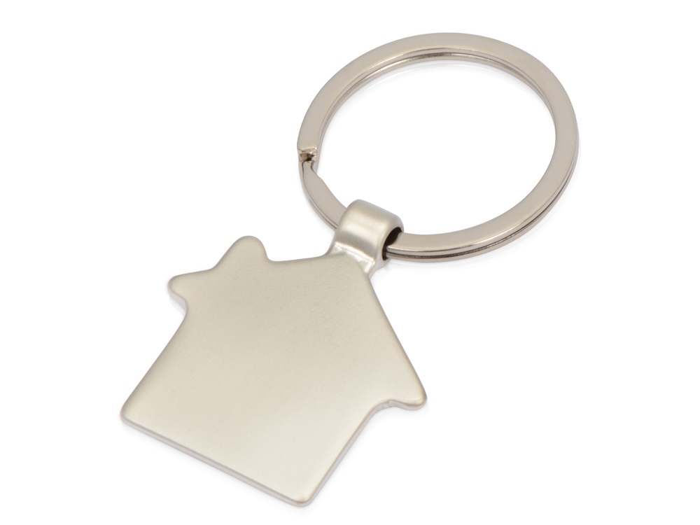 Оригинальный брелок в форме домика. Матовая металлическая поверхность идеально подходит для нанесения логотипа.