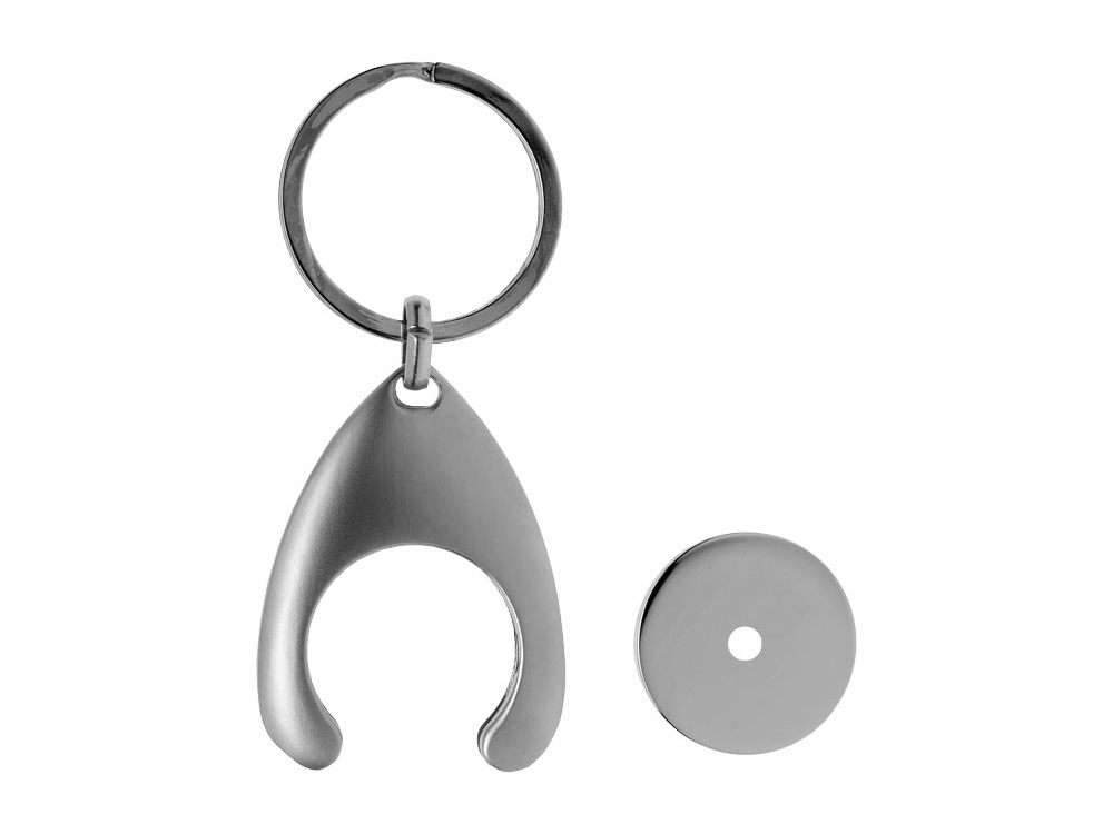 Брелок-держатель для монет для тележек. Держатель для монет достоинством 1 евро размером Ø 6 мм незаменим при поиске монеты для покупательской тележки в супермаркете. Включает черную подарочную коробку. Цинковый сплав.