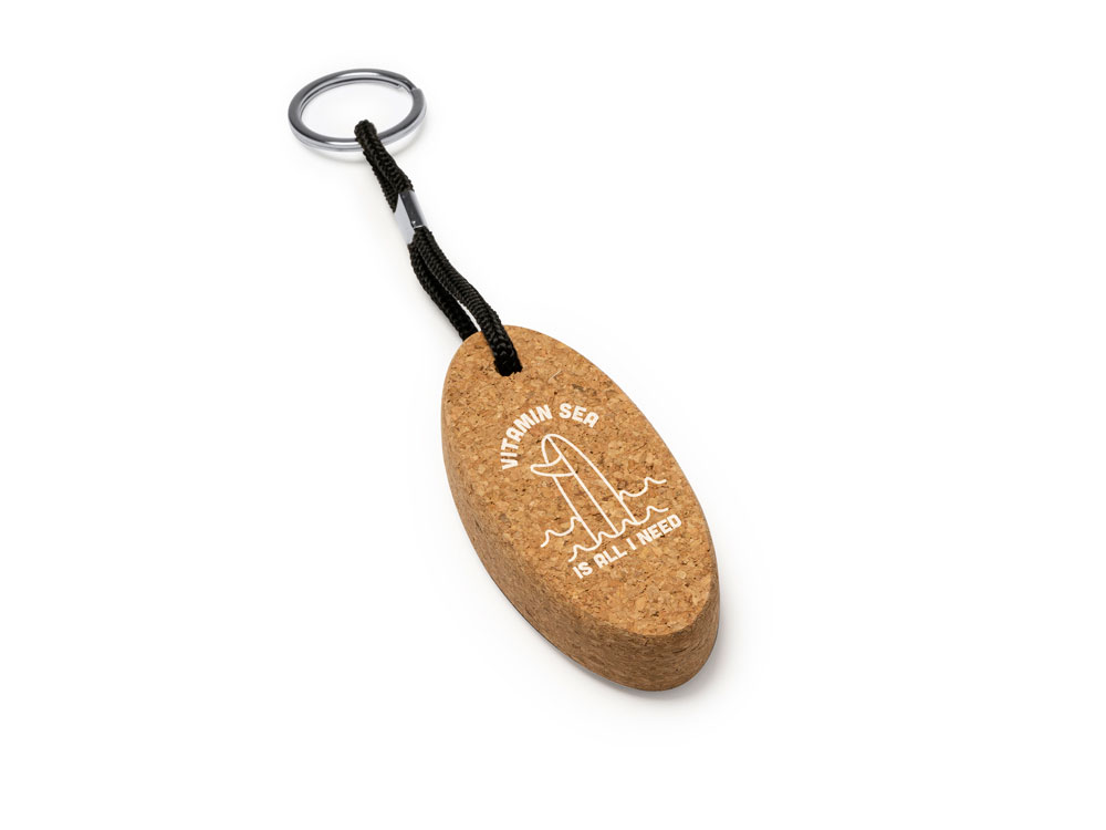 Овальный брелок-поплавок из натуральной пробки с прочной креплением из полиэстера. Брелок сохранит ваши ключи в безопасности, если они упадут в воду. Незаменимая вещь для пляжных дней.