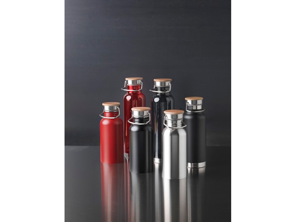 Бутылка из нержавеющей стали с одинарными стенками и съемной крышкой. На крышке есть бамбуковый колпачок и ручка для удобной переноски. Объем 550 мл. Представлена в подарочной коробке Avenue.