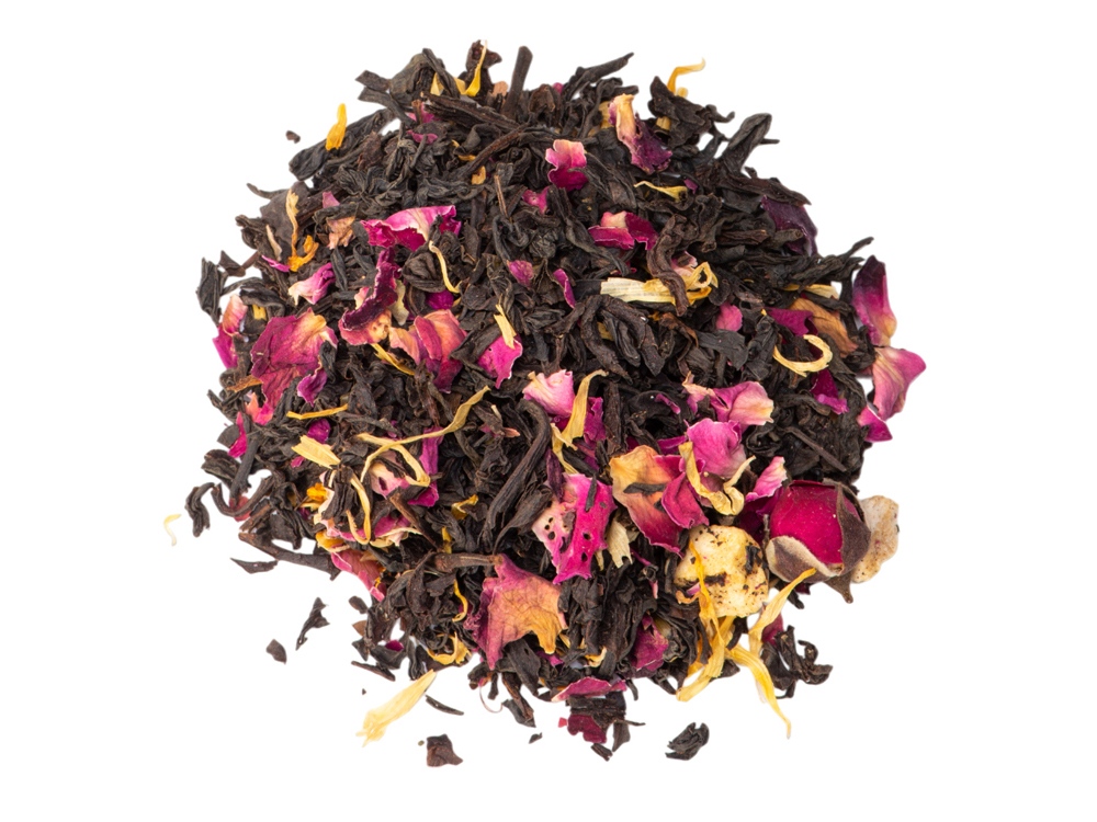 – состав: купаж на основе крупнолистового черного индийского чая, кусочки манго сублимированные, бутоны роз, лепестки роз, лепестки календулы, натуральный ароматизатор;