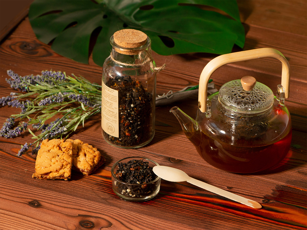 Состав: чай чёрный с ананасом и соком ананаса (чай чёрный байховый крупнолистовой, кусочки ананаса, сок ананаса), медовые гранулы, облепиха сублимированная, ароматизатор натуральный “Ананас”.