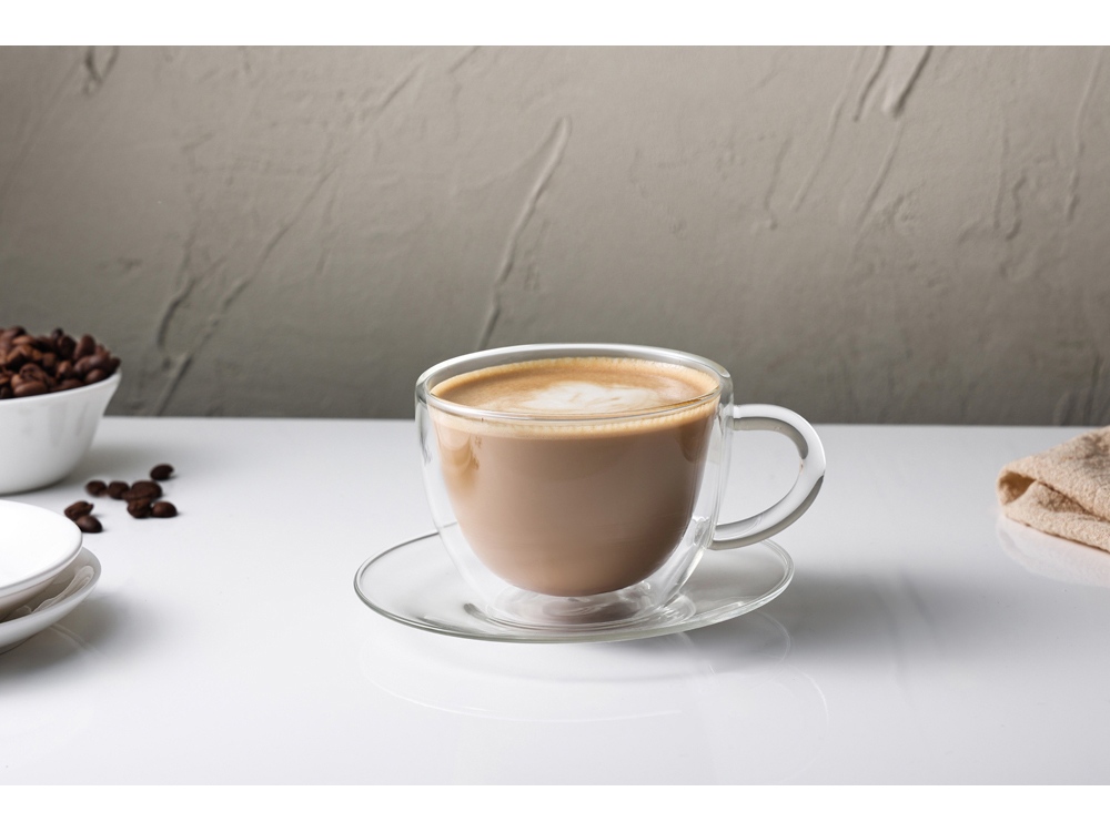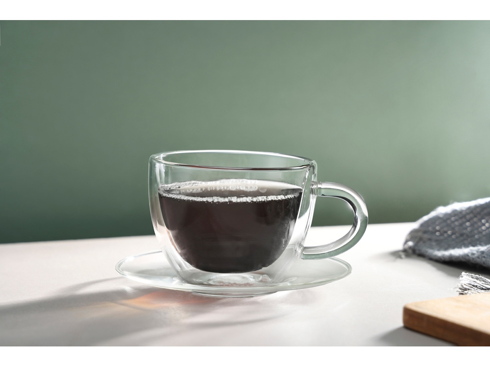 Изысканная чайная пара “Rio” – это гармоничное сочетание стиля и функциональности. Чашка с двойными стенками идеально подходит для наслаждения горячими и холодными напитками, а элегантное блюдце дополняет комплект, придавая ему особый шарм.
