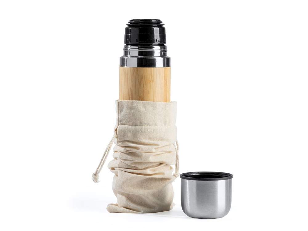 Чехол на шнурке из хлопка плотностью 120 г/м². Идеально подходит для бутылок или термосов.