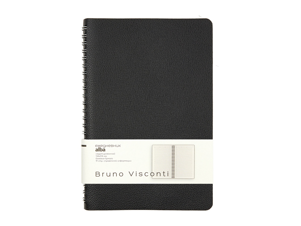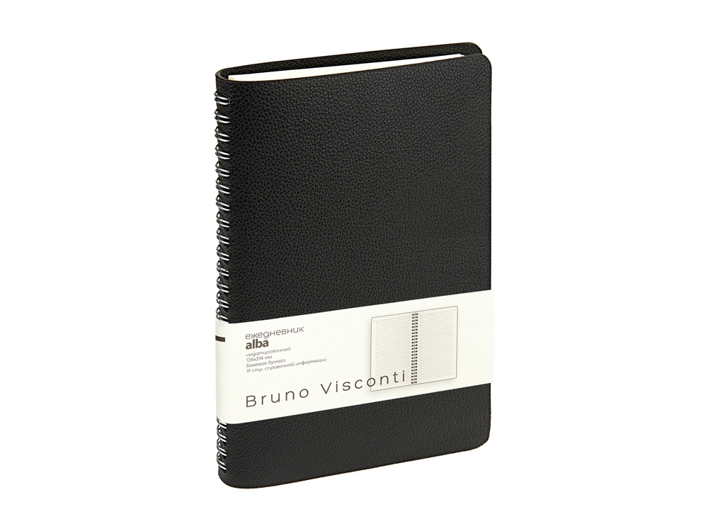 Недатированный ежедневник «Alba» ТМ Bruno Visconti формата А5 сочетает в себе два тренда, набирающих популярность среди современных деловых людей: полускрытый гребень, позволяющий переворачивать листы на 360 градусов, и мягкая гибкая обложка из искусственной кожи высокого качества исполнения.