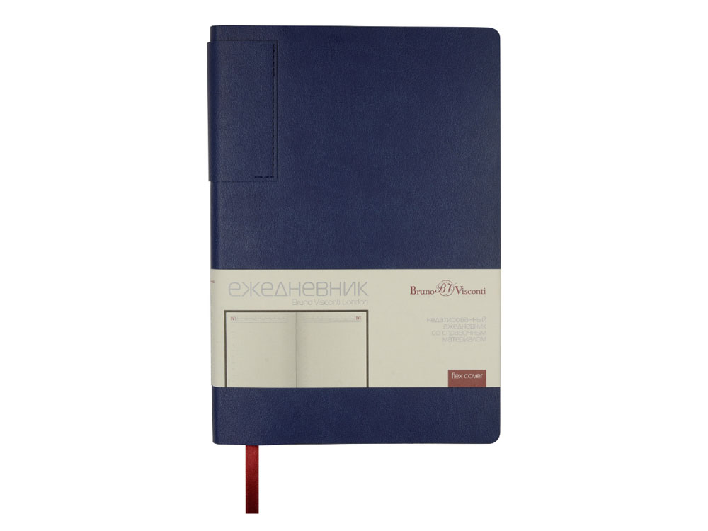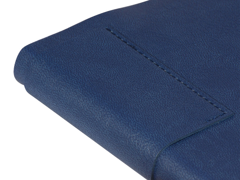 Лаконичная модель в ярком исполнении: гибкая обложка синего цвета с контрастной или в цвет обложки нашивкой. Выполнен из качественной и прочной искусственной кожи, крепление внутреннего блока – книжный переплет, закладка- ляссе. Углы обложки скруглены.