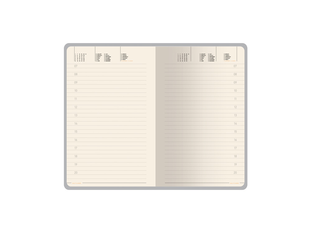 Прекрасный недатированный ежедневник с оригинальной гибкой обложкой. Хлястик вставляется прямо в специальную вырубку. Прекрасный отделочный материал – искусственная кожа высокого качества! 19 страниц справочной информации и телефонная книга на 28 страницах точно не будут лишними. Традиционно качественная бежевая бумага блока плотностью 70 г/м2 и печатью блока в 2 цвета.