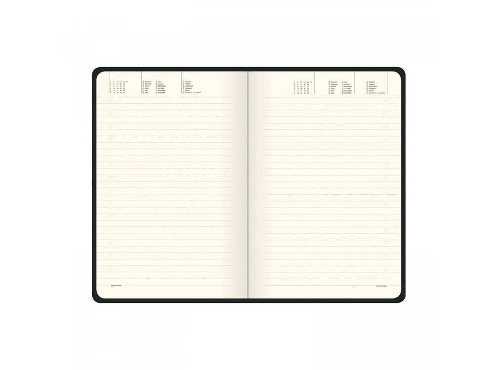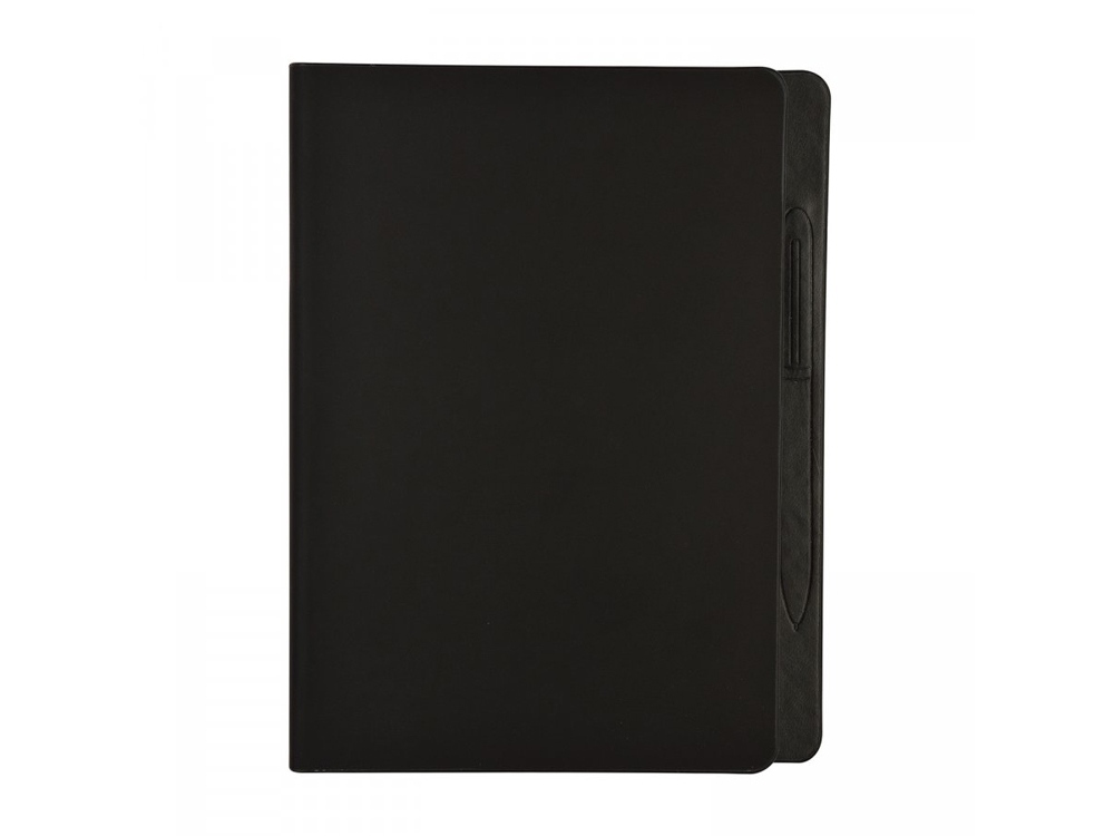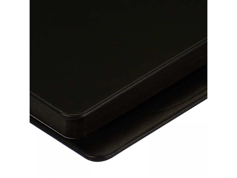 Скругленный угол обложки и блока, обрез окрашен в тон черной обложке. Покрытие обложки Soft Touch. Великолепная бумага 70 г/м. Скрытый магнит для металлической ручки. Ежедневник упакован в картонный полукороб и термопленку.