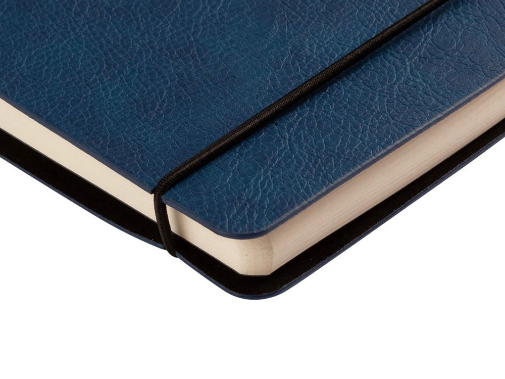 Отличительной особенностью ежедневника является горизонтальная, скрепляющая обложку и блок, тоненькая резинка. Оригинальное решение позволяет раскрывать ежедневник на 180 градусов и вести записи у самого края корешка. Для фиксации второй резинки, не позволяющей ежедневнику раскрываться, предусмотрена выемка на обложке. Обложка тонка, но фактурность придает ей элемент брутальности, а бархатистое нанесение на ее оборотной стороне- благородство и статусность. Картонный карман для визиток, записок, бумаг – функциональная деталь и приятная дополнительная опция. Бумажный блок изготовлен из бумаги бежевого цвета, плотностью 70 г/кв.м и содержит 272 страницы, 23 из которых справочная информация.
