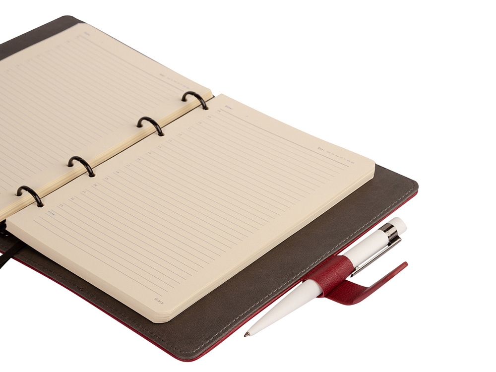 Недатированный ежедневник «Toscana» от Bruno Visconti на кольцах в твердом переплете – элегантный деловой аксессуар, подчеркивающий статус владельца с продуманным до мелочей функционалом:
