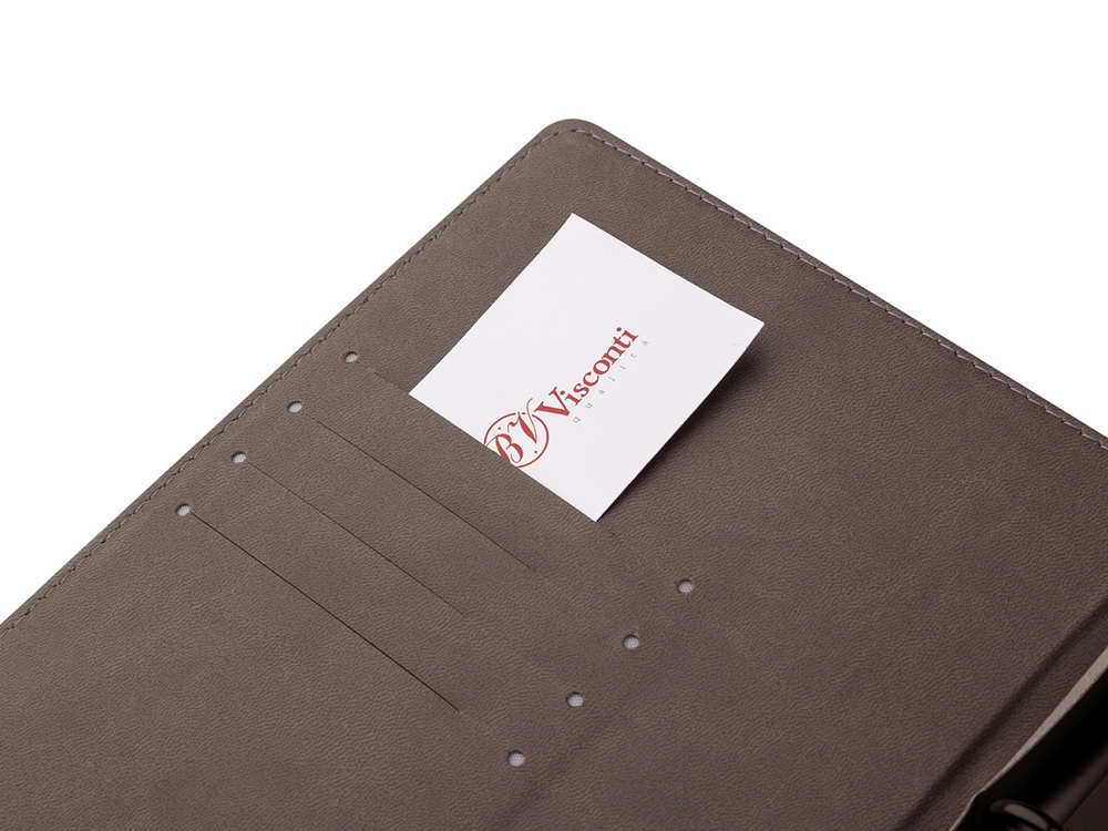 бархатистая отделка, вырубка под пластиковые карты и визитки на внутренней стороне обложки;