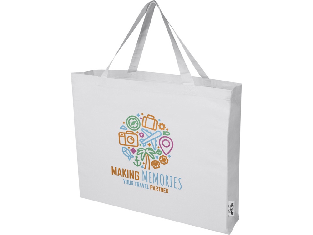 Эко-сумка Odessa, изготовленная из 100% переработанного хлопка, сертифицированного по стандарту GRS, создана для удобного ношения благодаря ручкам на плечо длиной 30 см и очень большому основному отделению с ластовицей. Независимо от того, хотите ли вы носить с собой тяжелые книги или продукты, эта сумка предназначена для удовлетворения любых потребностей. Методы печати, доступные для этой эко-сумки, также сертифицированы, что гарантирует прозрачность и сертификацию всей цепочки поставок. Хлопок плотностью 220 г/м² обеспечивает долговечность и надежность и позволяет переносить вес до 10 кг. Сделано в Индии. GRS certified recycled cotton.