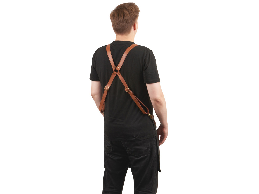 — Натуральная кожа КРС: Изготовленный из прочной кожи флотер, этот фартук не только защищает от загрязнений, но и приобретается с каждым ноской, становясь все более уникальным и стильным.