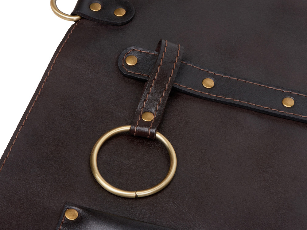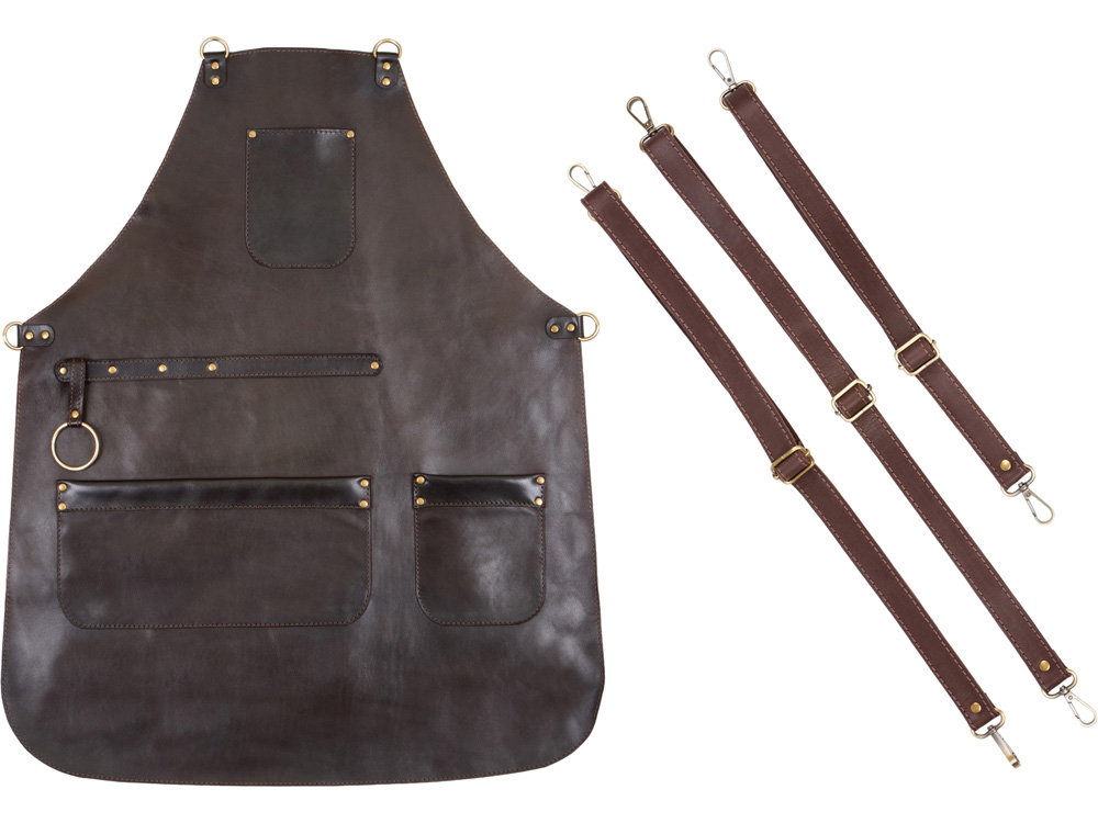 — Долговечная фурнитура: Металлическая фурнитура из сплава ЦАМ с антикованным покрытием не только делает фартук более прочным, но и добавляет ему строгий и классический вид.
