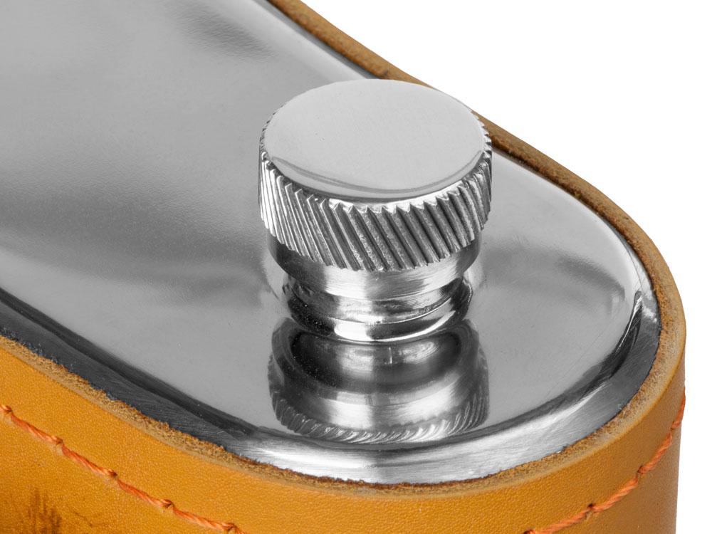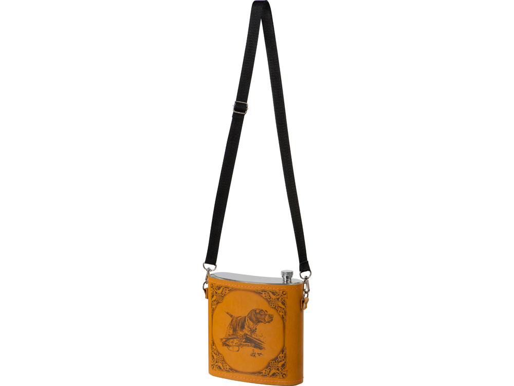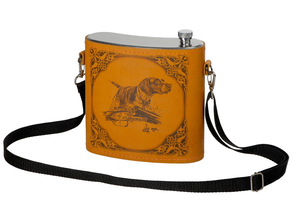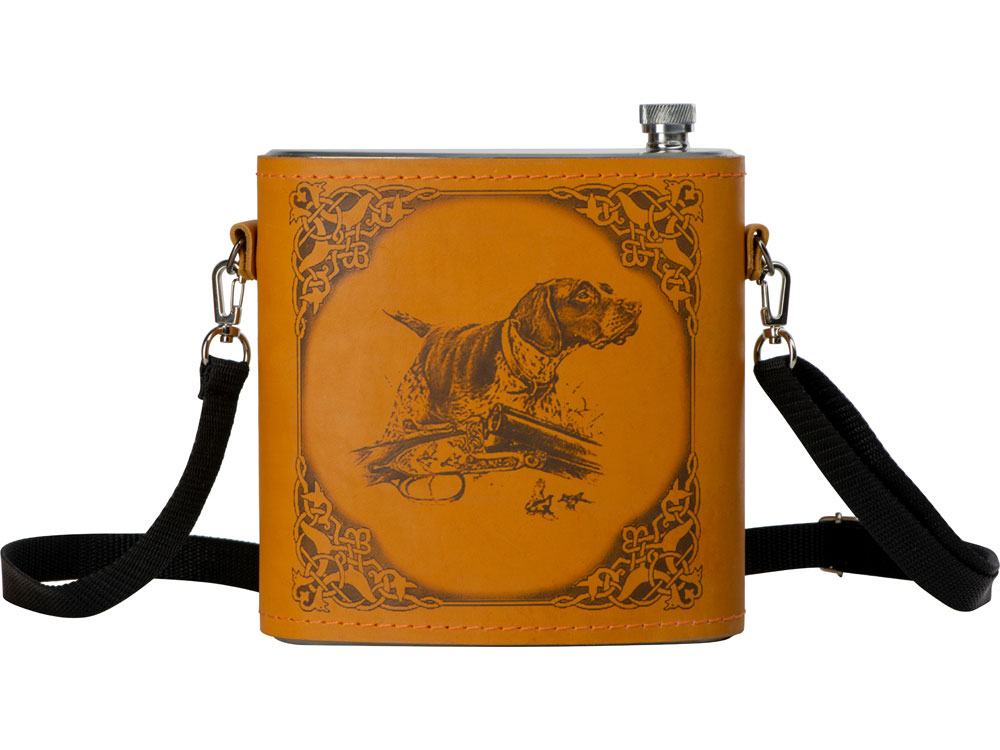 Фляга 1,5л в оплетке из натуральной кожи с нанесением рисунка методом художественного выжигания.