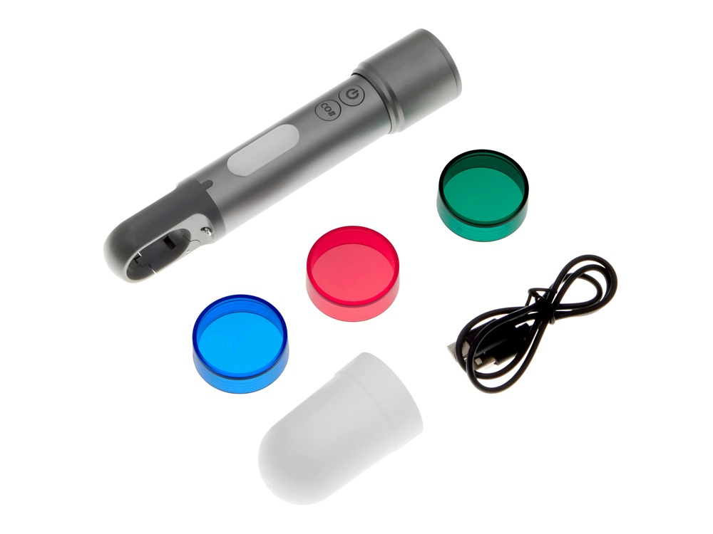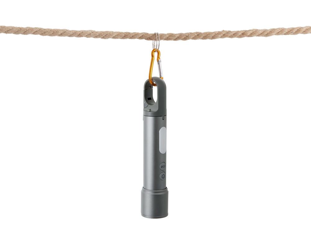 Для удобства использования предусмотрен прочный встроенный карабин. Фонарь прост в управлении: все функции доступны через две кнопки на корпусе. Комплект поставки включает зарядный кабель USB Type-C, инструкцию и сменные цветные насадки. Белая рассевающая насадка превращает фонарь в удобный подвесной светильник.