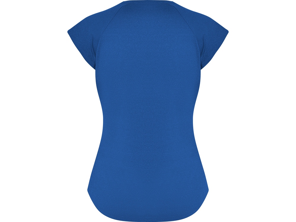 Спортивная женская футболка с коротким рукавом реглан. Вырез горловины V. Полотно из полиэстера на ощупь напоминающее хлопок. Приталенный силуэт.