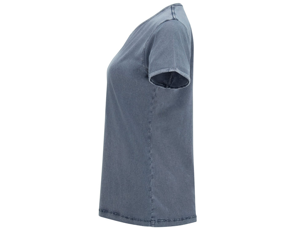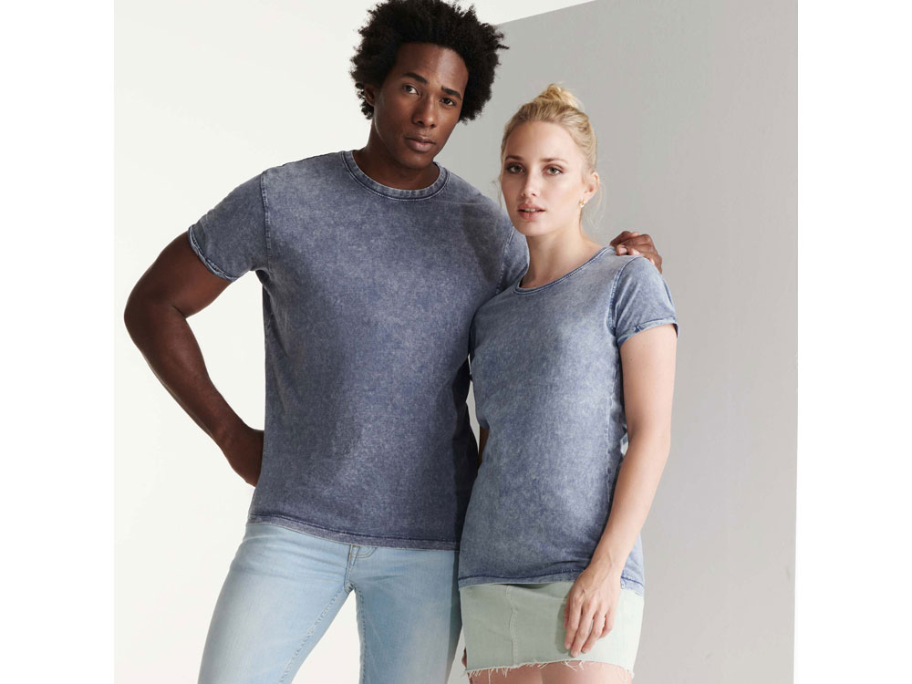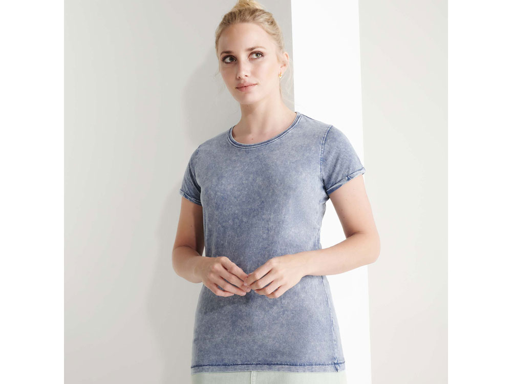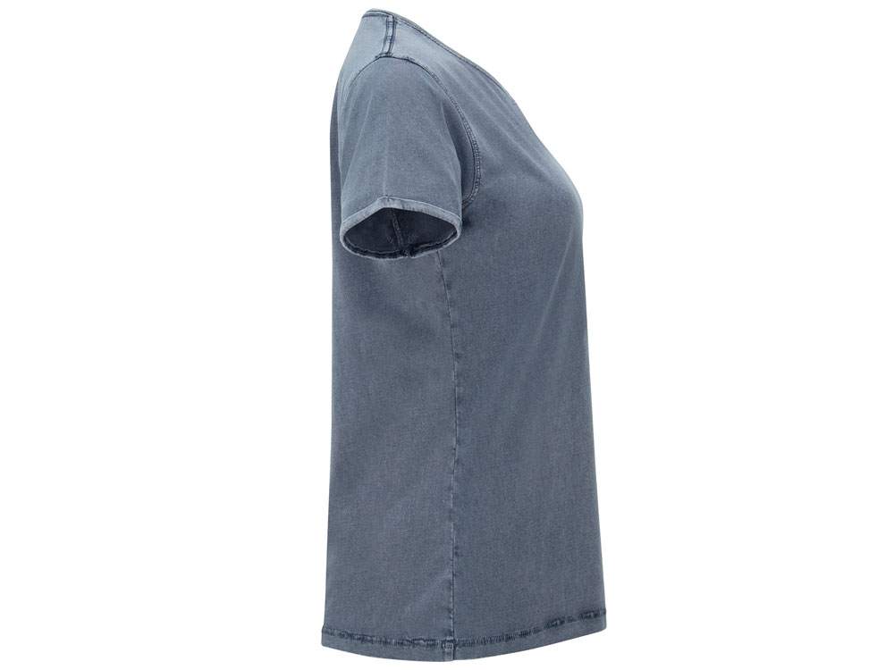 Женская футболка с джинсовым эффектом. Короткий рукав, горловина обработана рибом 1х1 и дополнительно укреплена тесьмой. Двойная отстрочка по пройме. Рукав с закручивающимся краем. В ассортименте также представлена аналогичная мужская модель «Husky»