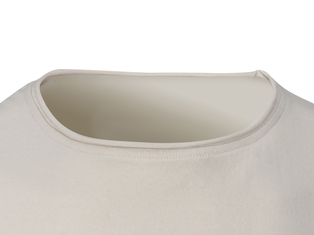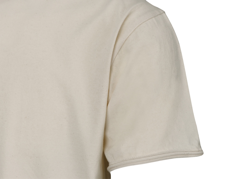 Современная футболка из натурального, неотбеленного хлопка. Без боковых швов – отлично подходит для нанесения. Горловина, рукава и низ выполнены с декоративной отделкой.