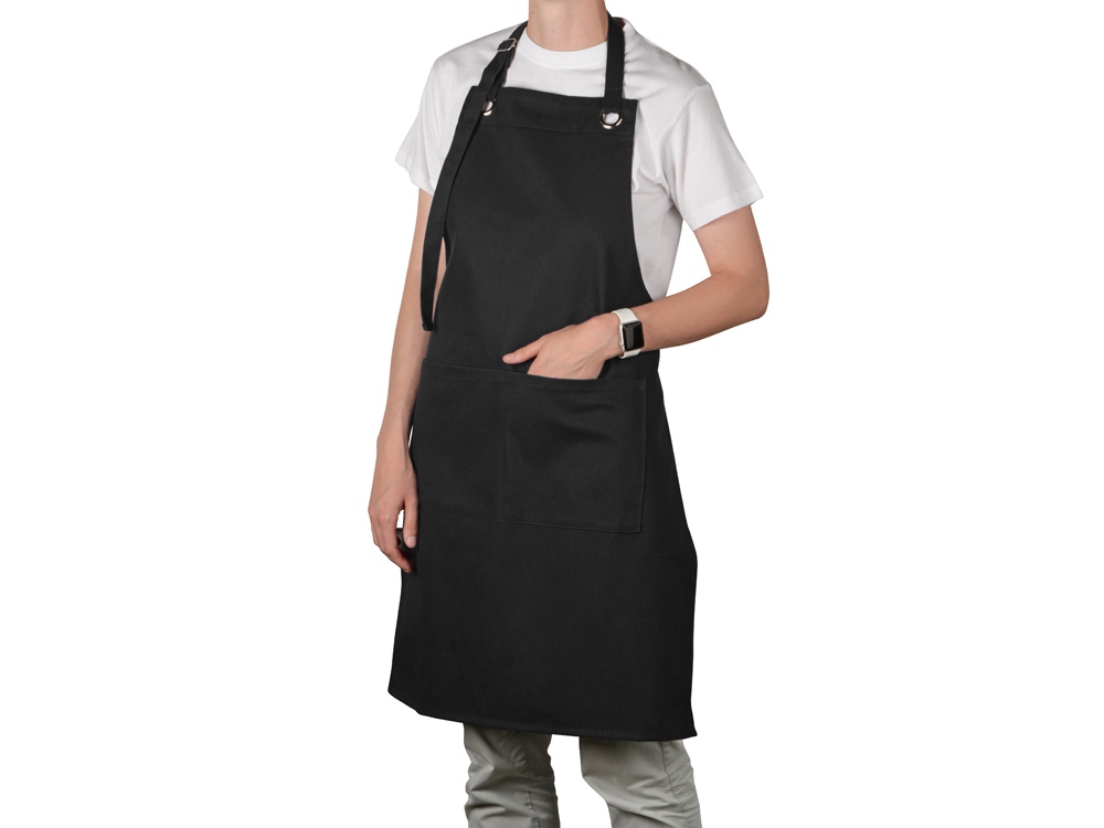 На фартуке имеется кармашек для того, чтобы самые важные кухонные приборы или телефон всегда были под рукой. А с помощью регулируемых завязок на шее, фартук будет сидеть максимально комфортно.