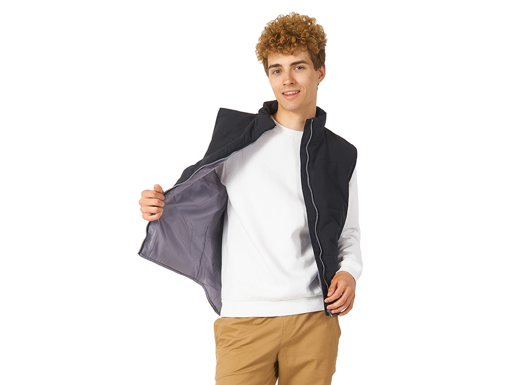 Мужской жилет “Ontario” стандартного покроя – это классная базовая вещь любого гардероба. Жилет идеально подойдет для осенне-весеннего периода. Его можно сочетать как с вещами в стиле casual, так и сделать частью спортивного стиля. Жилет изготовлен из 100% полиэстера и синтепона, имеет застежку-молнию по всей длине и боковые карманы.