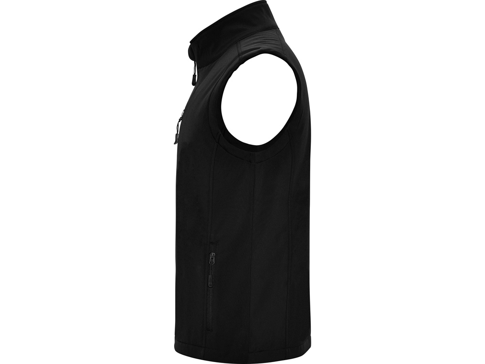 Двухслойный жилет софтшелл. – Центральная молния в тон с защитой для подбородка. – Нагрудный карман с правой стороны с молнией в тон. – Два внешних кармана на молнии в тон. – Низ с эластичным шнуром и фиксаторами.