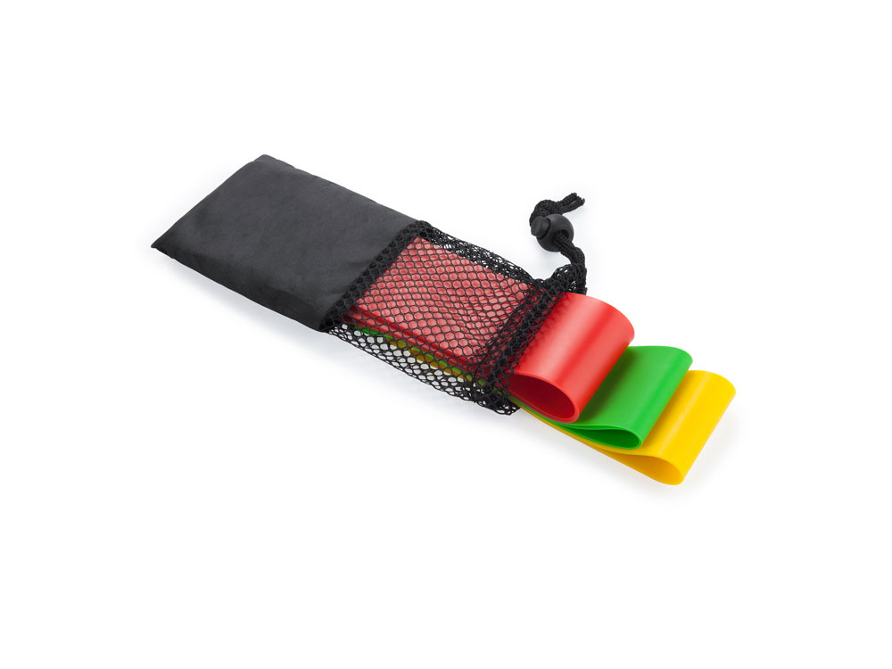 Комплект эластичных лент для фитнеса с разным сопротивлением из полиэстера. Размеры ремешков: 30 х 5 см.