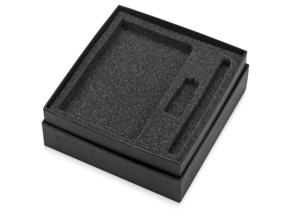 Коробка с ложементом для ручки, флешки и блокнота А6. Коробка изготовлена из переплетного картона кашированного дизайнерской бумагой эфалин, ложемент изготовлен из поролона премиум-класса.
