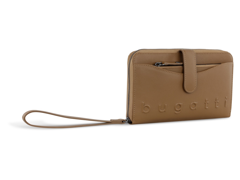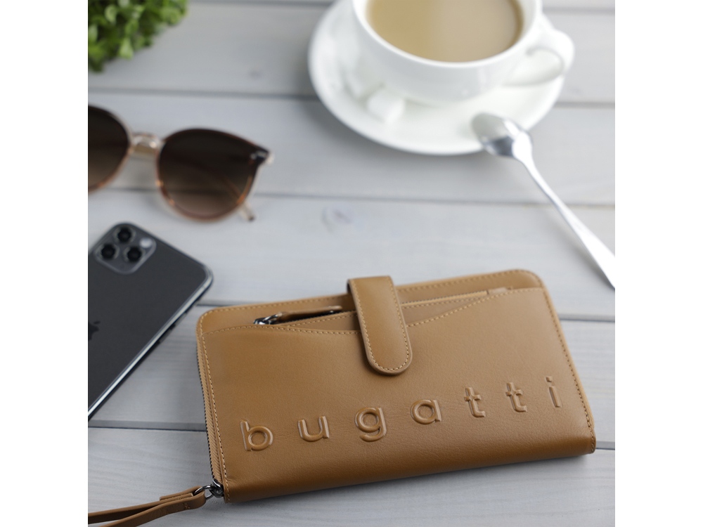 Функциональная организация: основное отделение на молнии, 12 слотов для карт, 2 отделения для купюр, 2 кармана, отделение для монет на молнии, съемная ключница, ремешок на запястье, защита данных RFID.