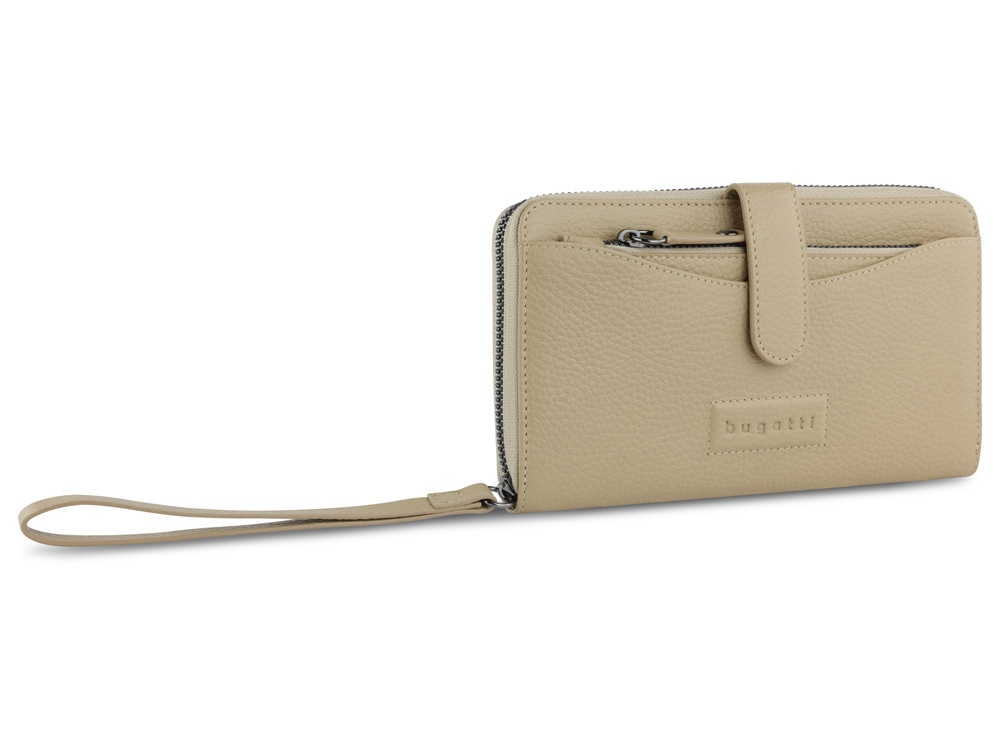 Функциональная организация: основное отделение на молнии, 12 слотов для карт, 3 кармана, 2 отделения для купюр, отделение для монет, съемная ключница, ремешок на запястье, защита данных RFID.