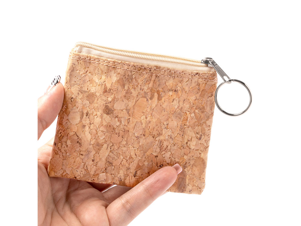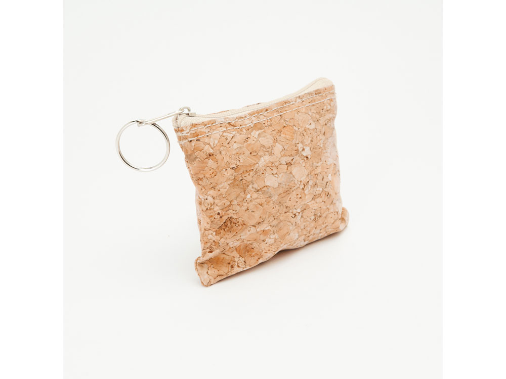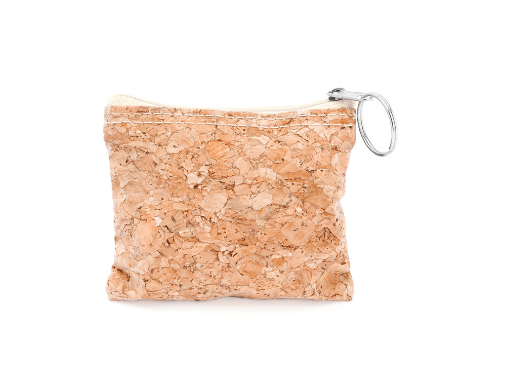 Кошелек из натуральной пробки с серебристым кольцом на застежке-молнии.