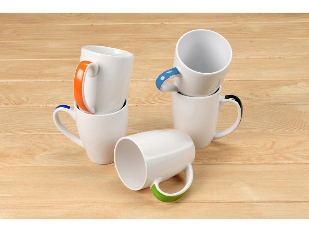 Не знаешь что дарить? Дари кружку! Многие выбирают подарок именно так. Объемная керамическая кружка на 320 мл — вещь действительно нужная и полезная. Яркая цветная полоса на ручке радует глаз, а на белый корпус можно нанести изображение: логотип компании или напоминание о событии. Прекрасный промо-сувенир для любой акции.