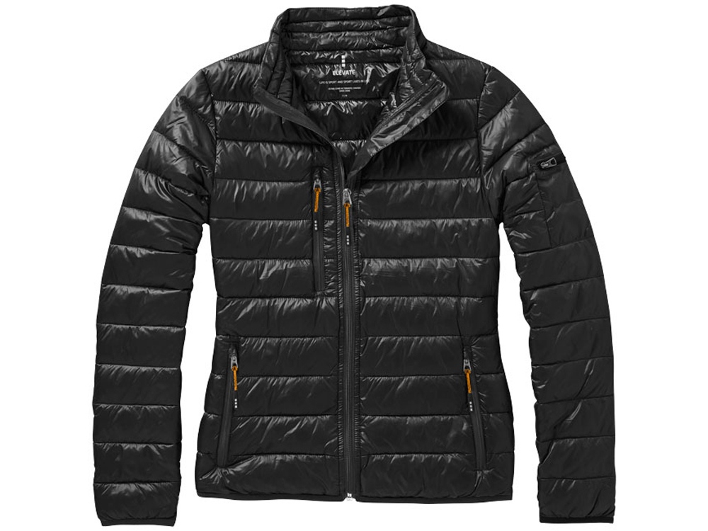 Женская легкая куртка Scotia. Стандартный покрой. Ткань не пропускает пух. Карманы для рук и нагрудный на молнии. Карман на рукаве на молнии можно использовать для нанесения. Резинка на манжетах и внизу куртки. Ремешки на собачку (второй комплект в цвете антрацит). Внутренний противоветровой клапан и защита подбородка. Ткань дышащая, ветронепроницаемая и влагоотталкивающая. Отражающий лого сзади. Легкий пуховик. Ткань из 100% нейлона с матовым и блестящим водоотталкивающим покрытием, 20D. 80% пух и 20% перо. 115 г/м².