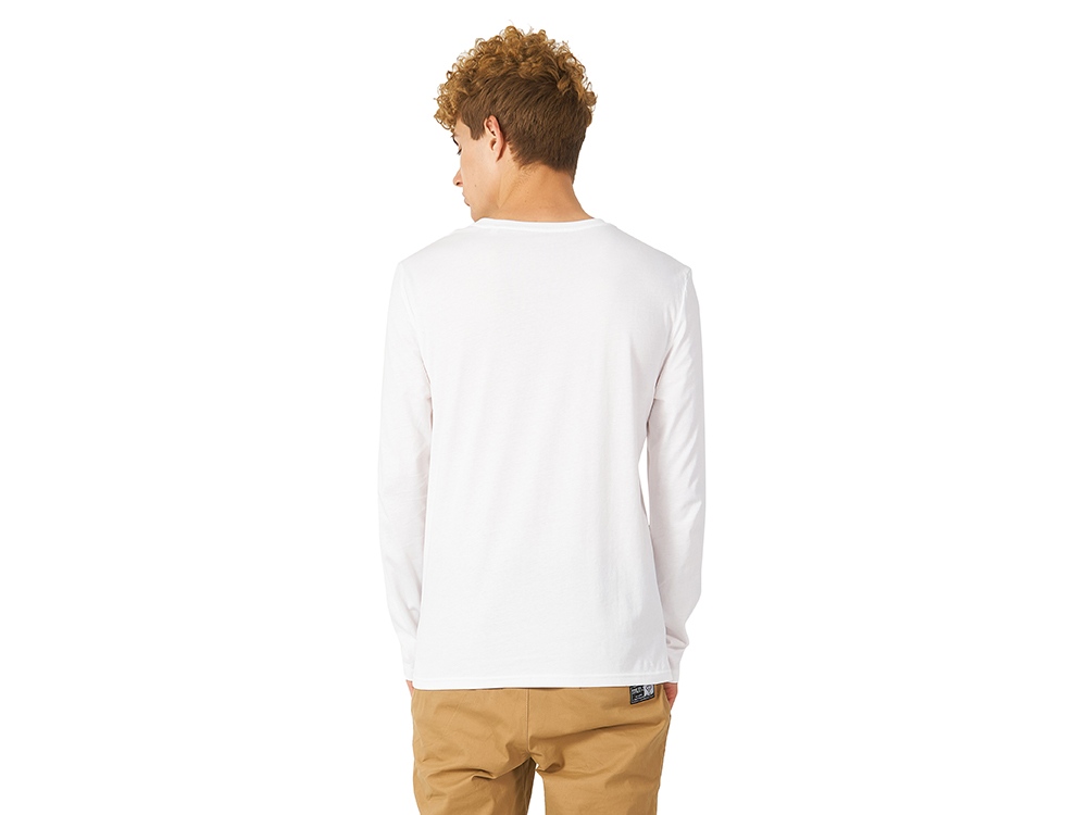 Футболка с длинным рукавом комфортной посадки с боковыми швами. Горловина обработана рибом 1х1 и тесьмой по спинке. Футболка выполнена из хлопкового джерси.