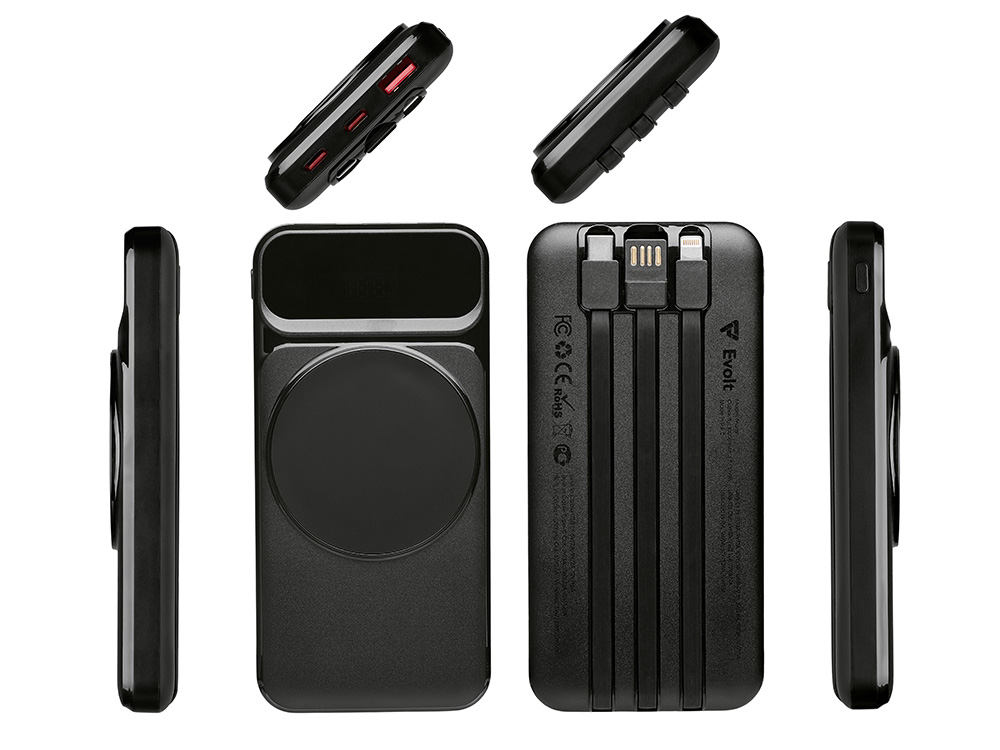 – Встроенные кабели (Lightning, USB-C, USB-A) — не нужно искать дополнительные кабели: зарядка других устройств и подзарядка аккумулятора происходят через встроенные кабели.